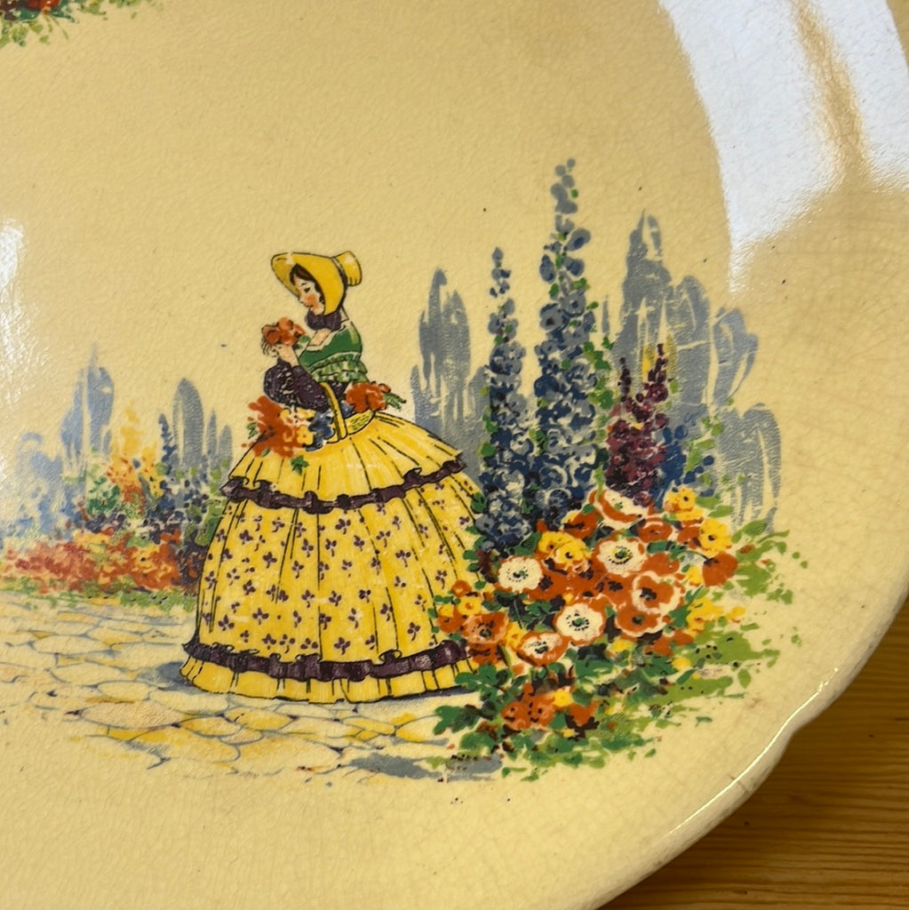 Made in England Bovey Pottery cake stand featuring ‘Dainty Dinah’ style crinoline lady.