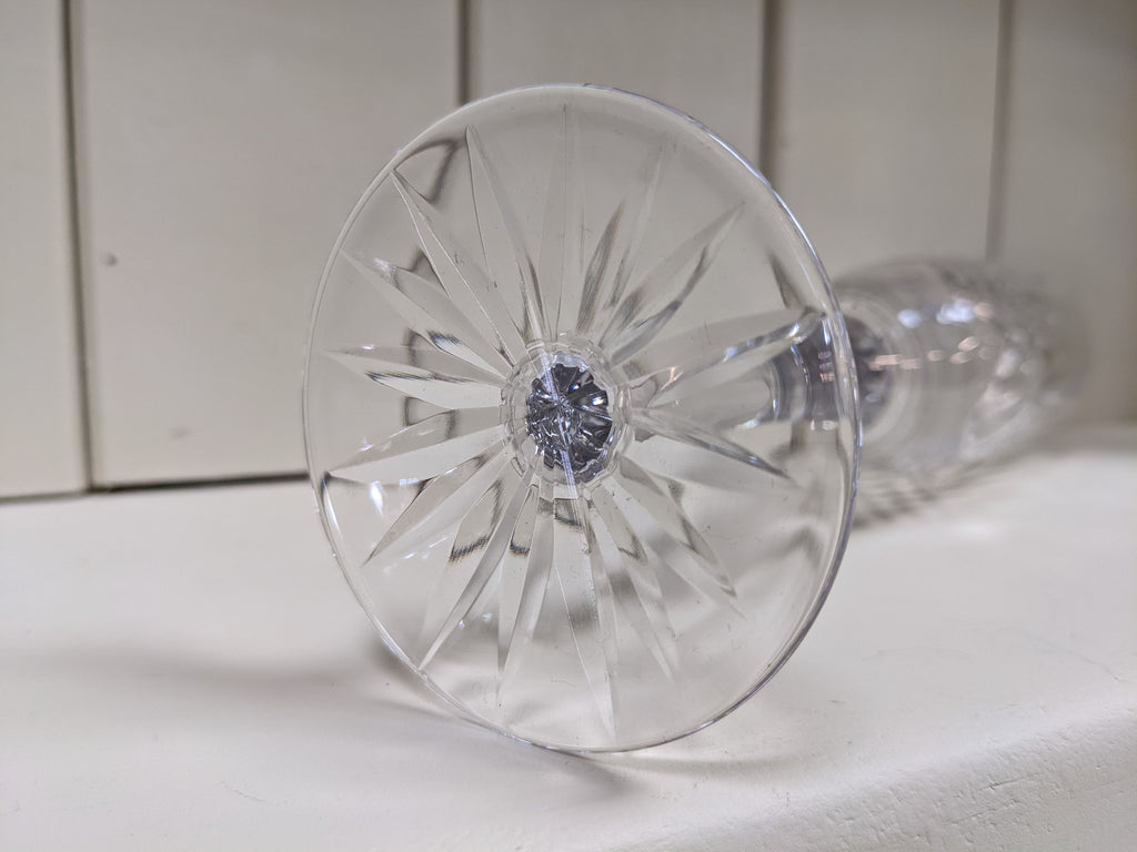 Each glass measures 6.3cm base diameter, 5.5cm rim diameter, 22.7cm height.
