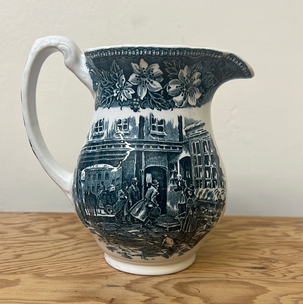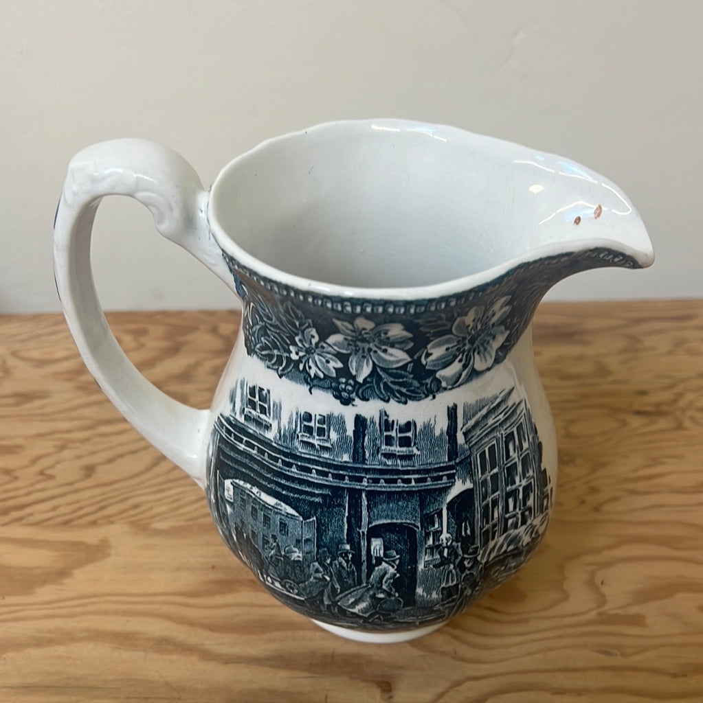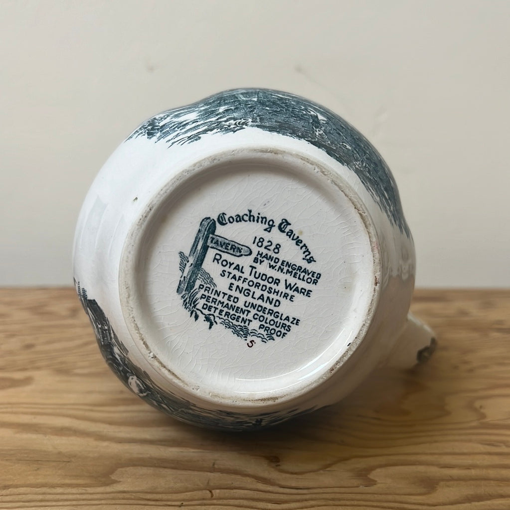 Very detailed Coaching Taverns 1828 jug from Royal Tudorware, Staffordshire, England. Hand engraved by W.N.Mellor.