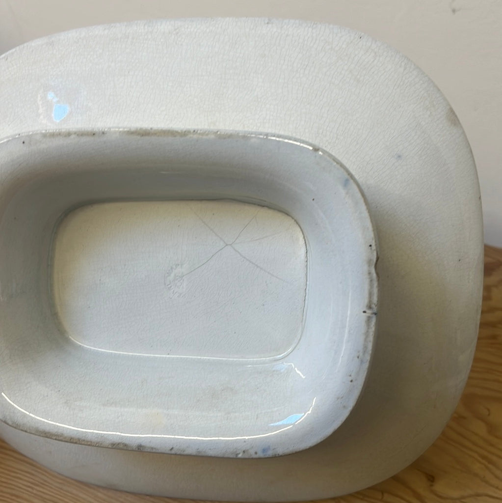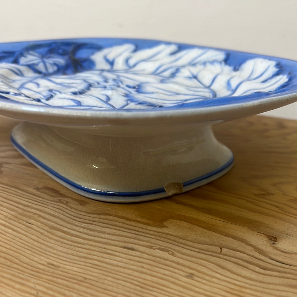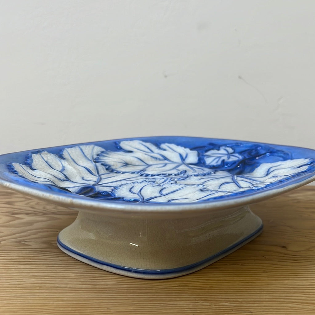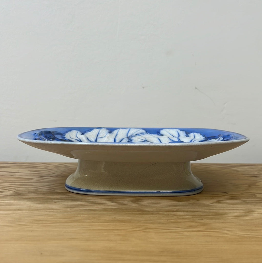 Featuring a moulded white and blue leaf design, this rounded rectangular dish would make an excellent serving platter for your next dinner party. Pair with our matching plate set, sold separately.