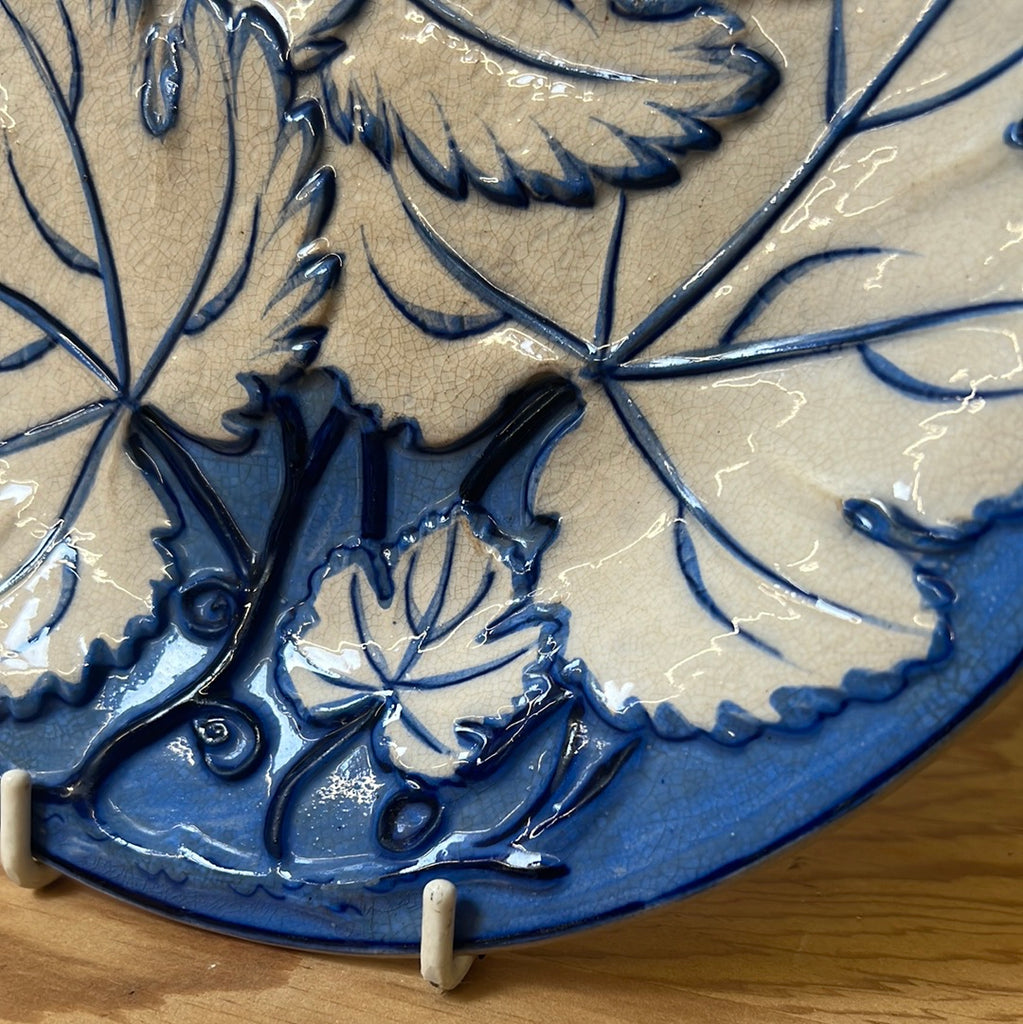 Featuring a moulded white and blue leaf design, this serving plate makes for great decoration or practical use. Pair with our matching pedestal dish, sold separately.