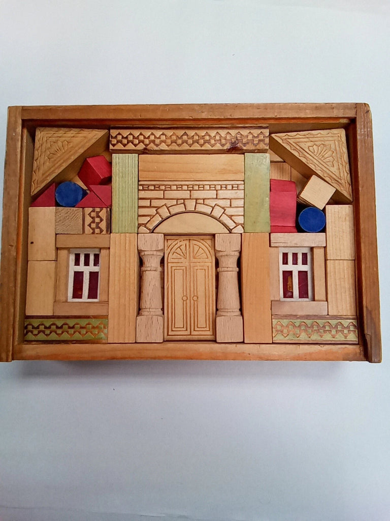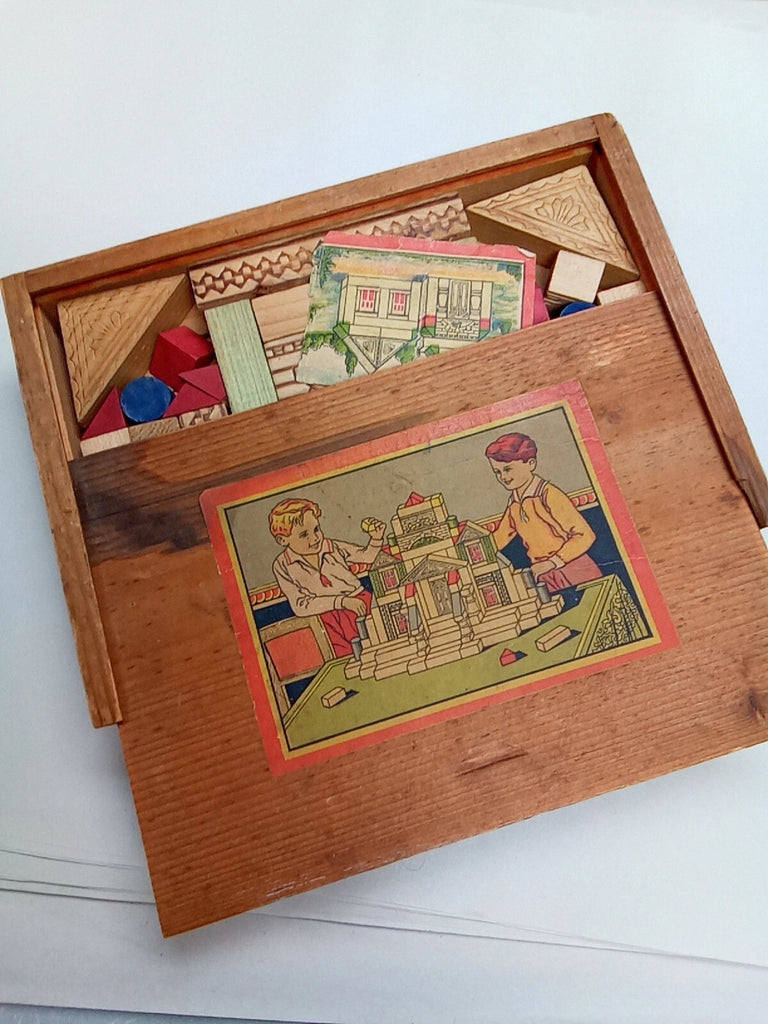 Vintage Wooden Building Bricks in Original Box