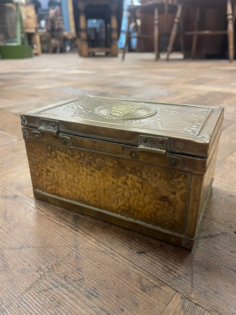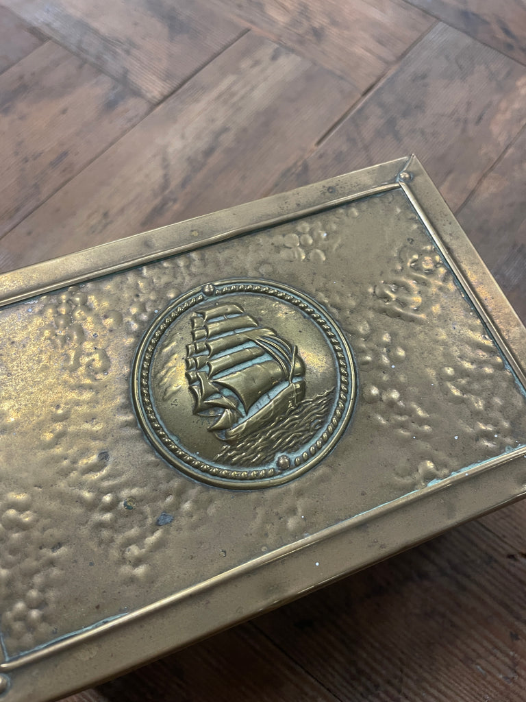 This lovely vintage tea caddy is crafted from solid wood and coated in a nautical brass design. It would make a great gift for a collector of brass or nautical items, or could even be used as a quirky storage box!