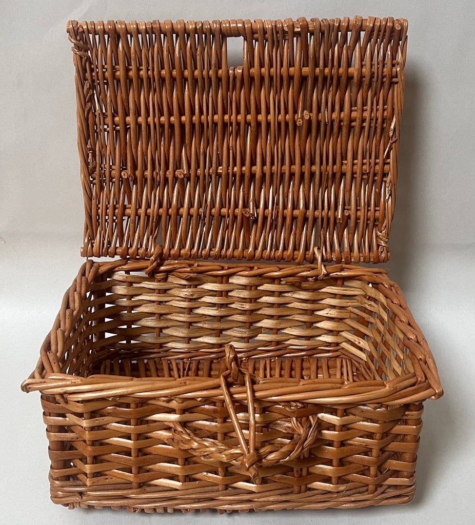 Sturdy woven picnic basket. Would make a lovely hamper or storage box.