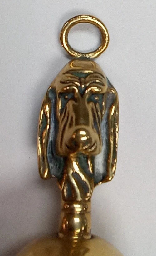 A charming vintage brass brush with natural bristles set in wood, featuring an endearing bloodhound dog motif.