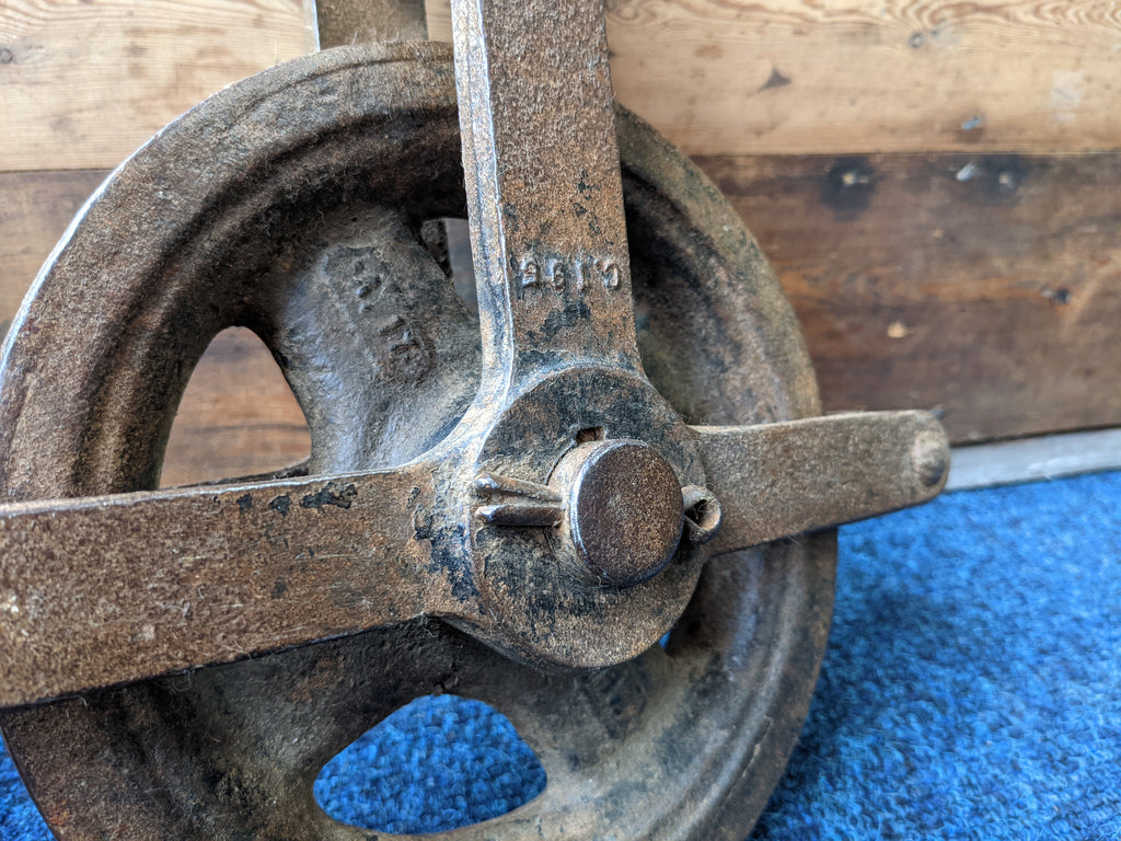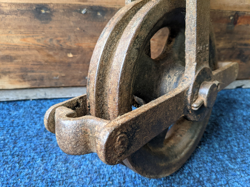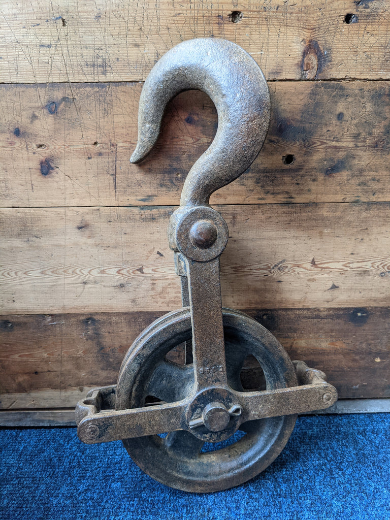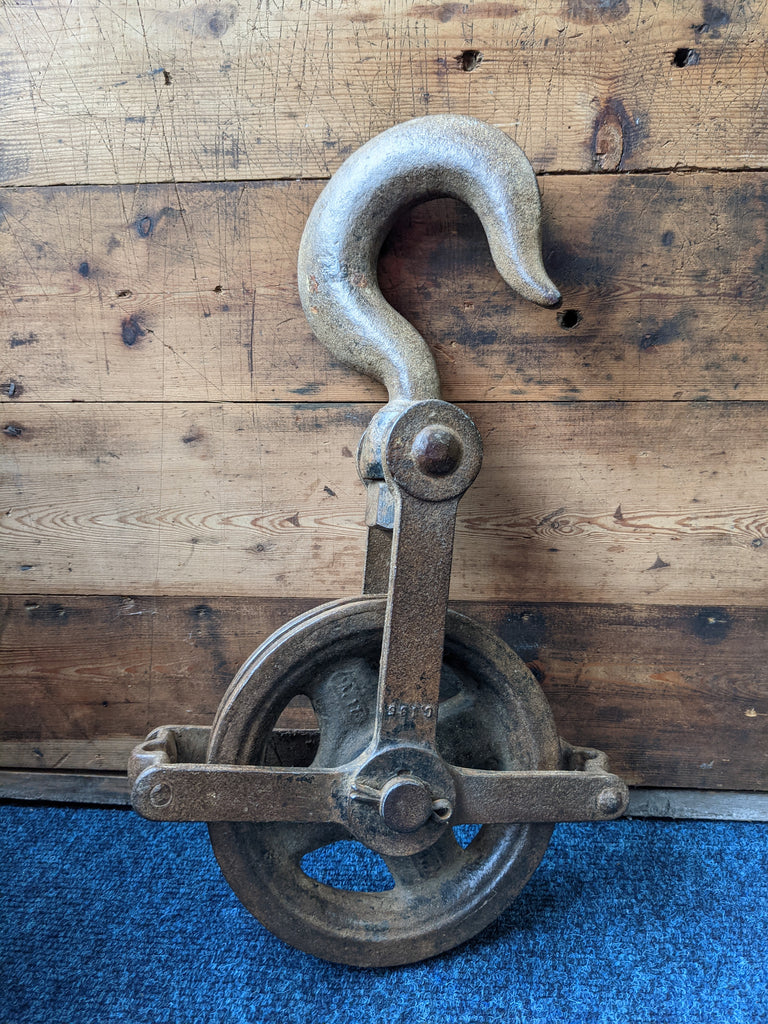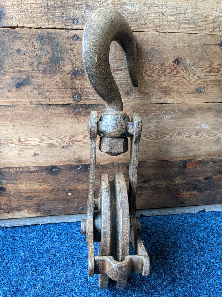 Genuine, original, and engraved with the serial number C.195, this ship's hook & pulley is both vintage and very heavy!