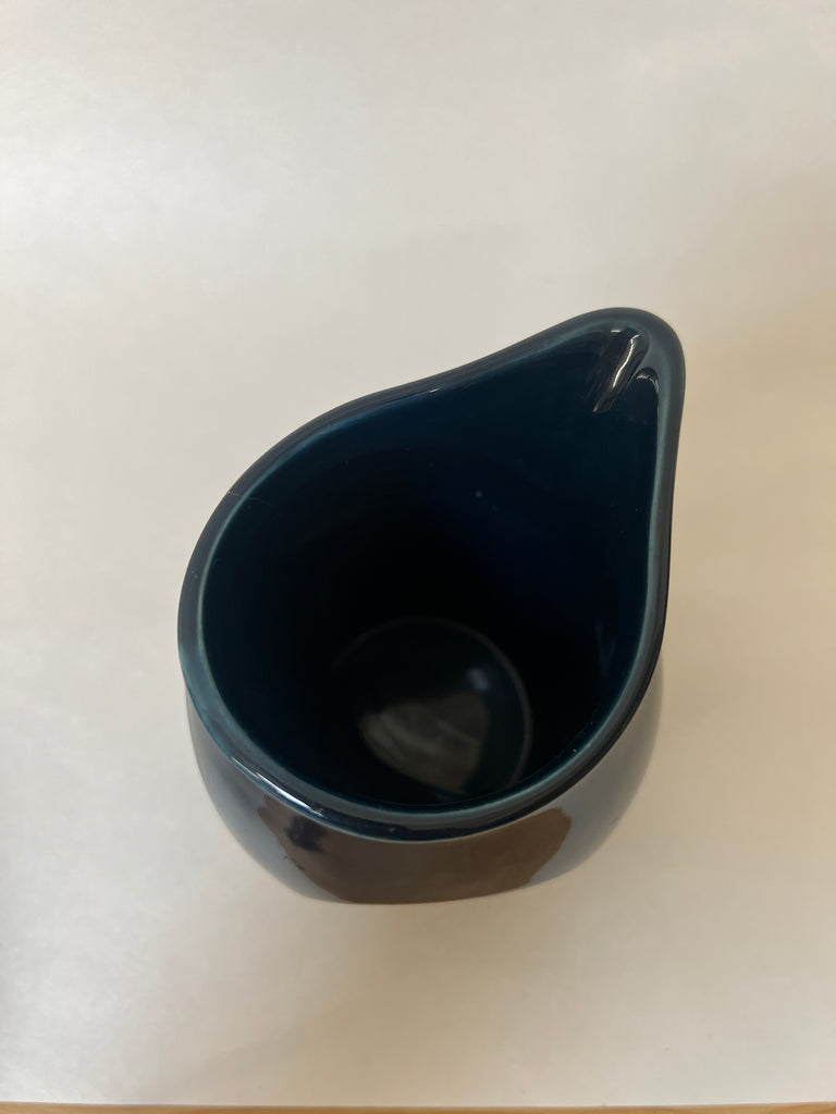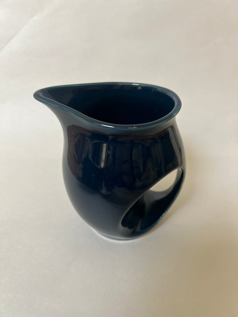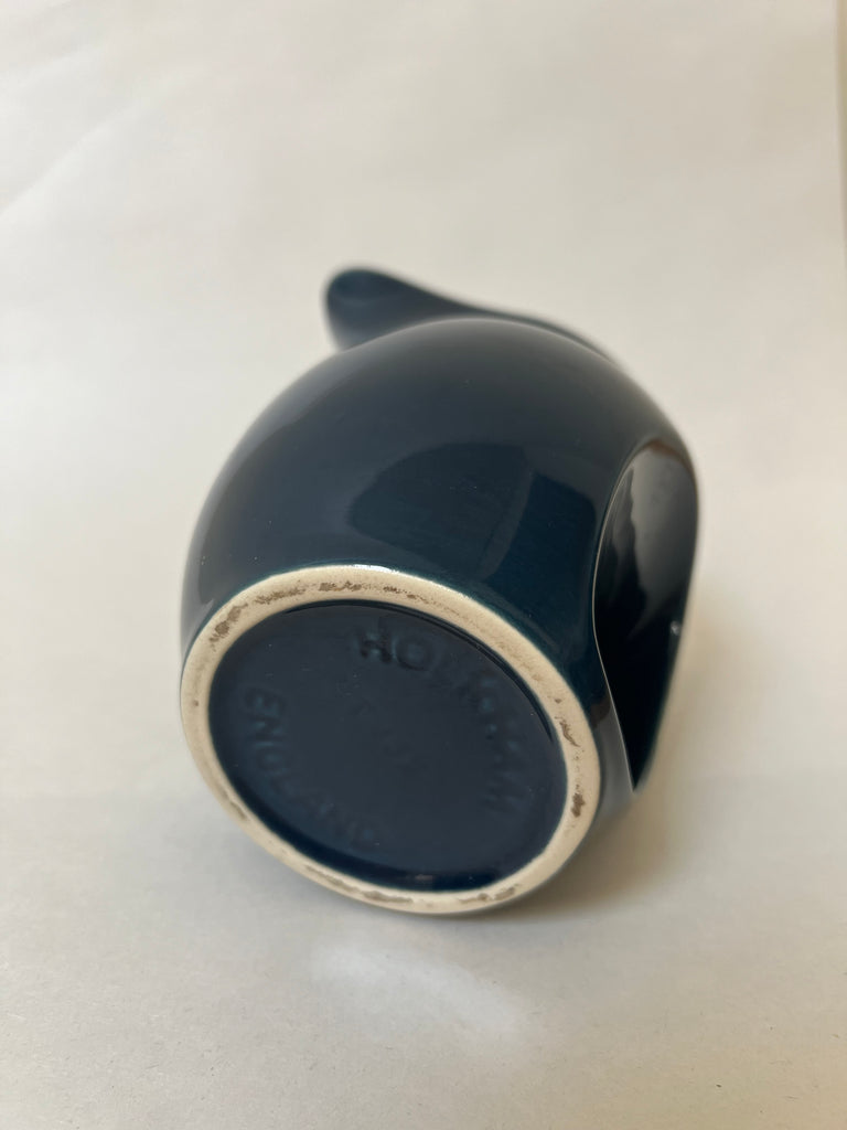 Large Holkham pottery ‘owl eye’ handle milk jug in dark blue. Could serve as a functional piece or as a lovely decorative item.