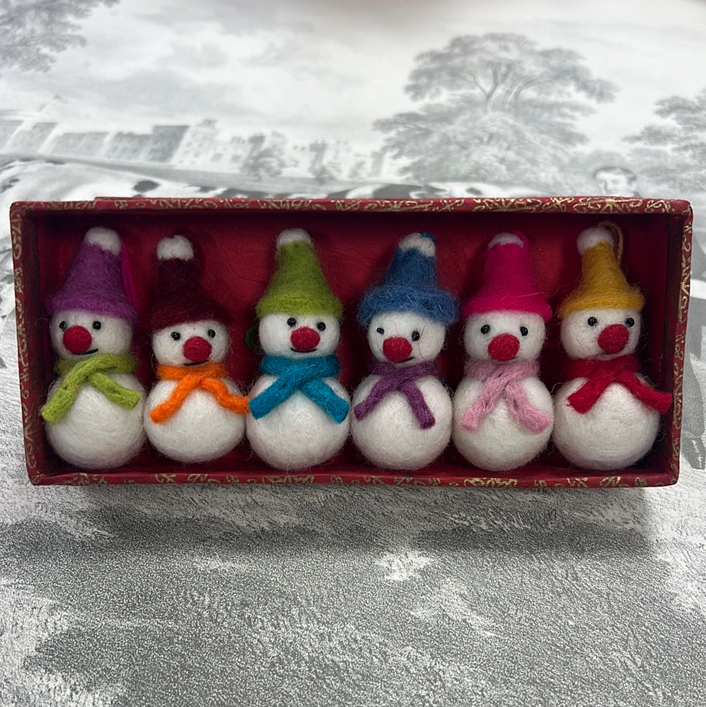 Make your holiday decor unique with these adorable little smiling snowmen. Complete with colourful little hats and complimentary scarves. Each one is lovingly crafted, giving it its own playful personality. Perfect for adding a touch of whimsy to your home.