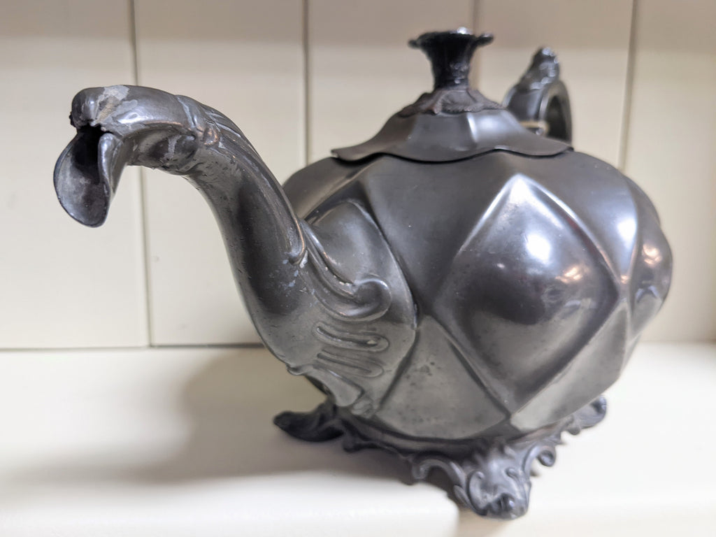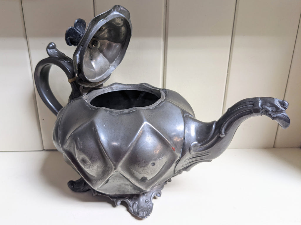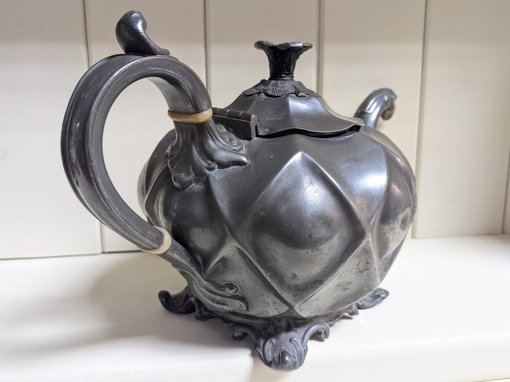 Ornate Pewter Teapot by James Dixon & Son c.1843