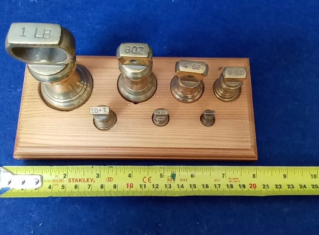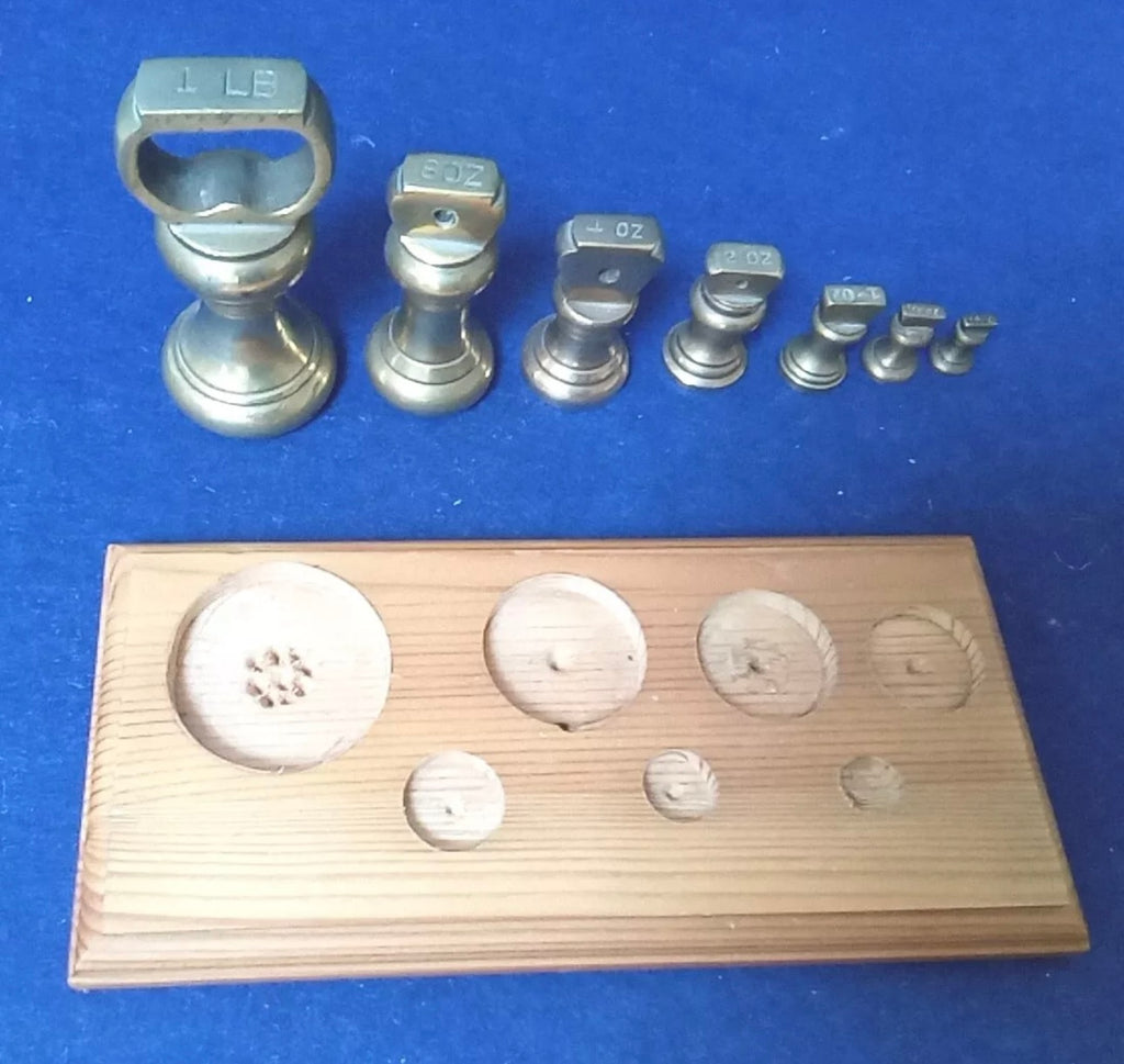 This set includes: 1lb, 8oz, 4oz, 2oz, 1oz, ½oz, ¼oz