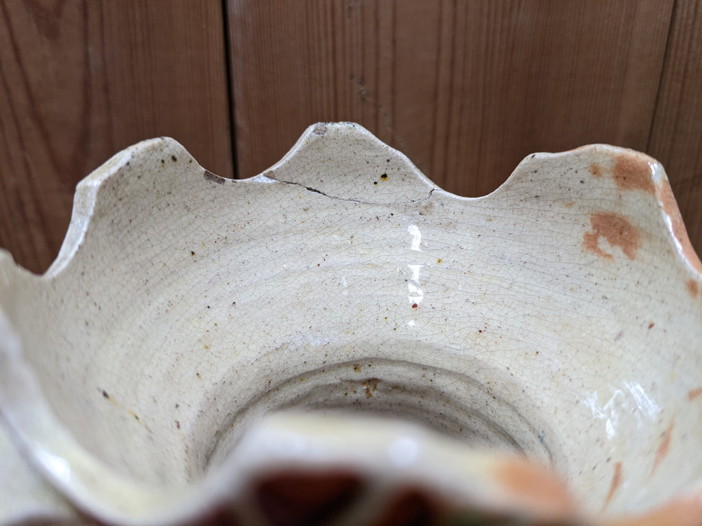 This piece does show signs of historical repair to the rim and also some light crazing across the piece, which we have done our best to picture