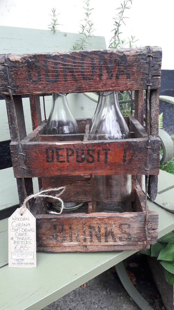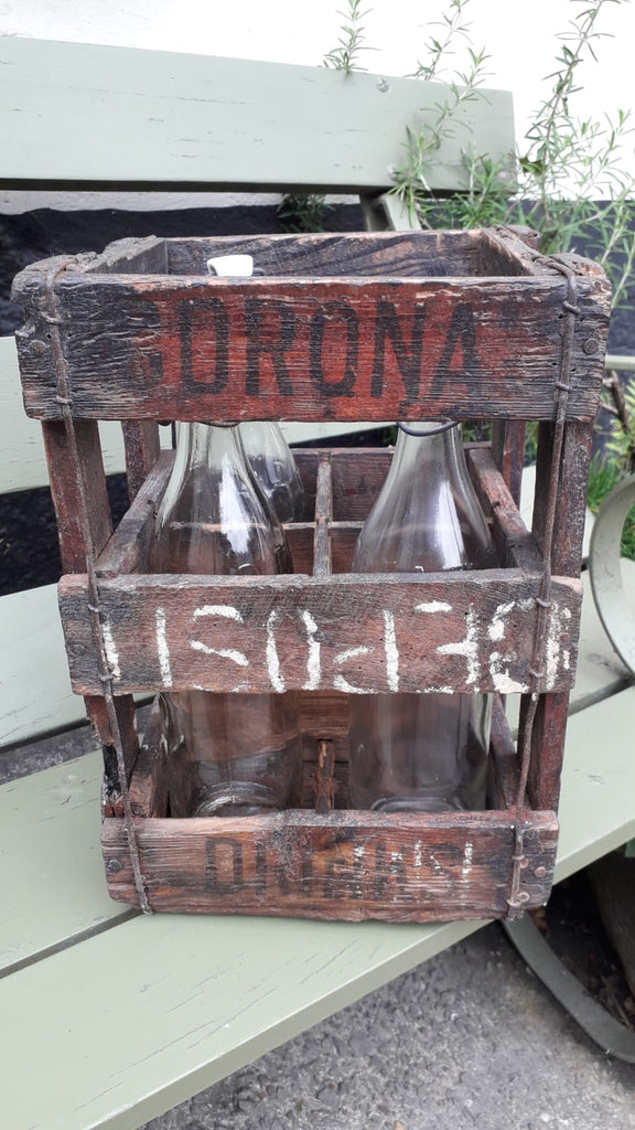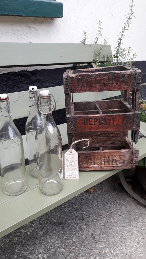 Originally used for transporting bottles of Corona pop drink, this lovely rustic box would make a great rustic bottle holder or even as a decorative piece for your home!