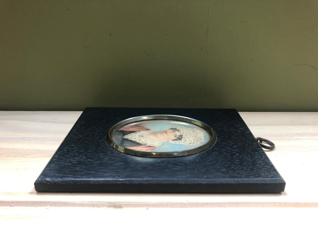 This item measures 15cm height, 12cm in width and roughly 2cm in depth. The portrait itself measures 8.5cm height and 7.5cm in width.