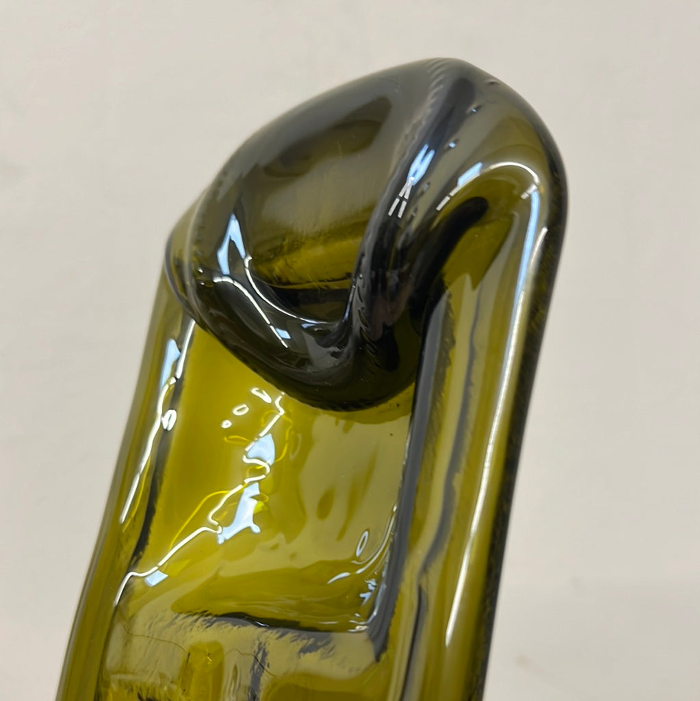 Green glass wine bottle melted down into this lovely serving dish! Perfect for your next tapas night.