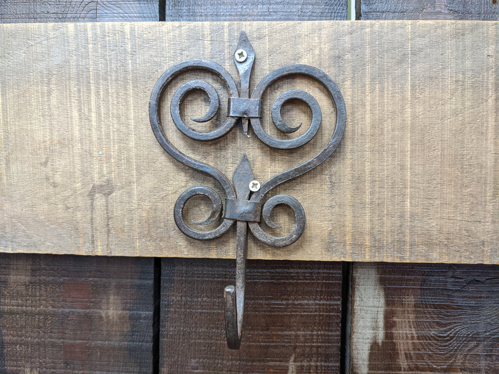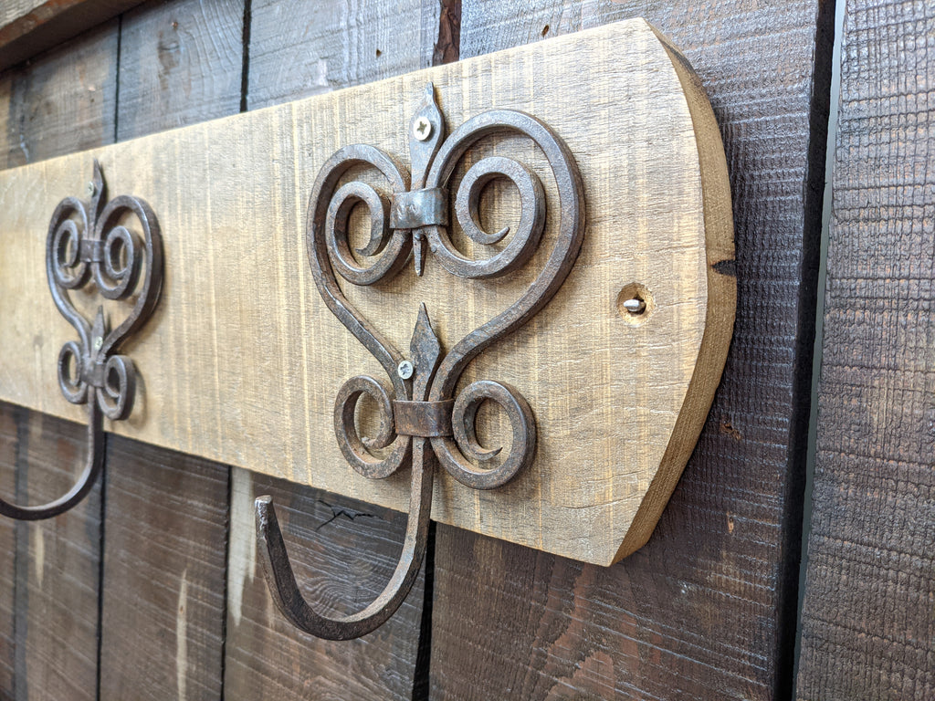 Add a touch of country character to any setting with this unique oak coat rack, complete with three hand forged iron hooks!