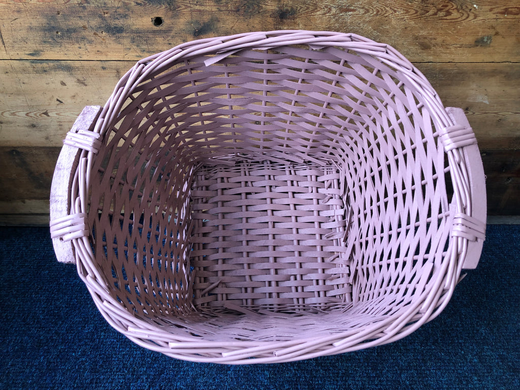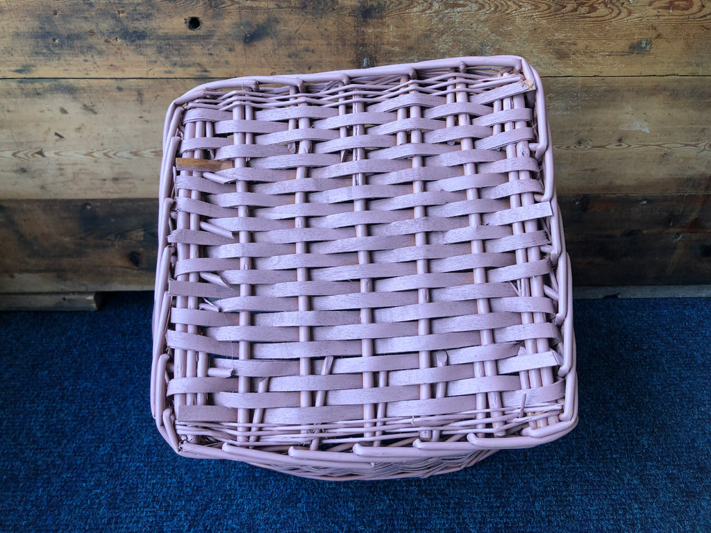 A lovely willow basket painted in a muted pastel pink colour. Great finishing touch to the home.