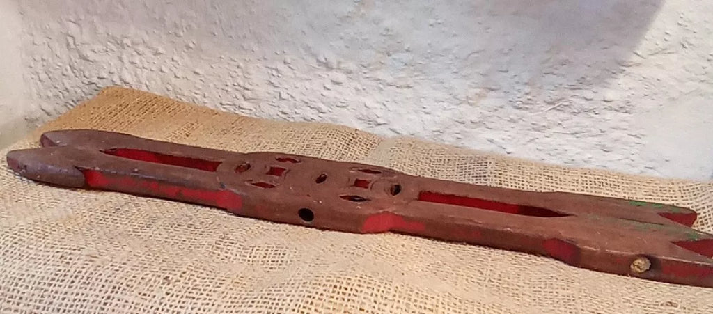 A charming wooden weather vane, hand-carved from solid wood and showing a beautiful aged patina. Some of the original red and green paint remains, adding character to this vintage piece.
