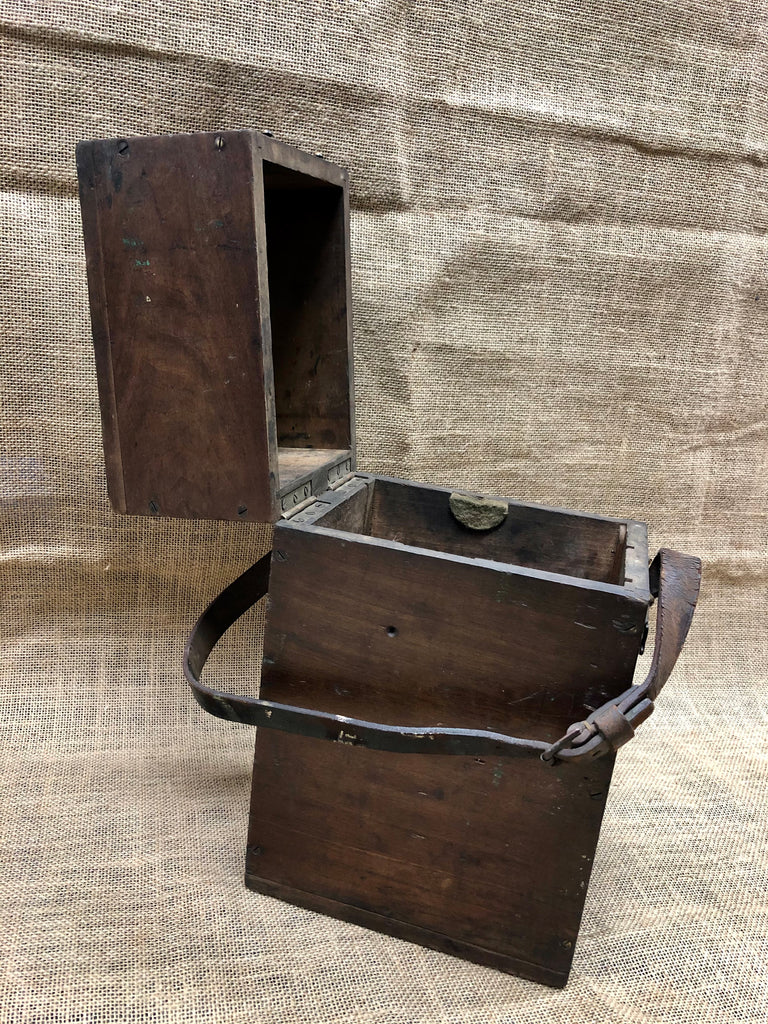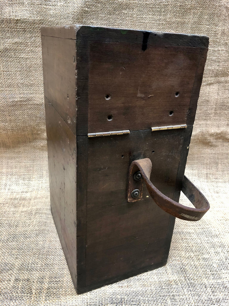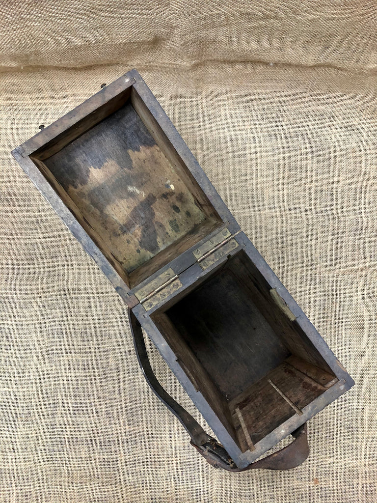 Bursting with history, this 1940’s RAF Mark IV Tail Drift Sight Wooden Container comes complete with original leather strap, engraved plaque and lockable lid.