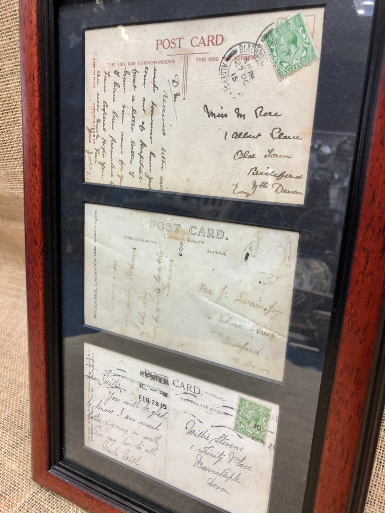 Both framed and very well kept, these WWI postcards were sent overseas from France to loved ones in our local town of Bideford, North Devon!