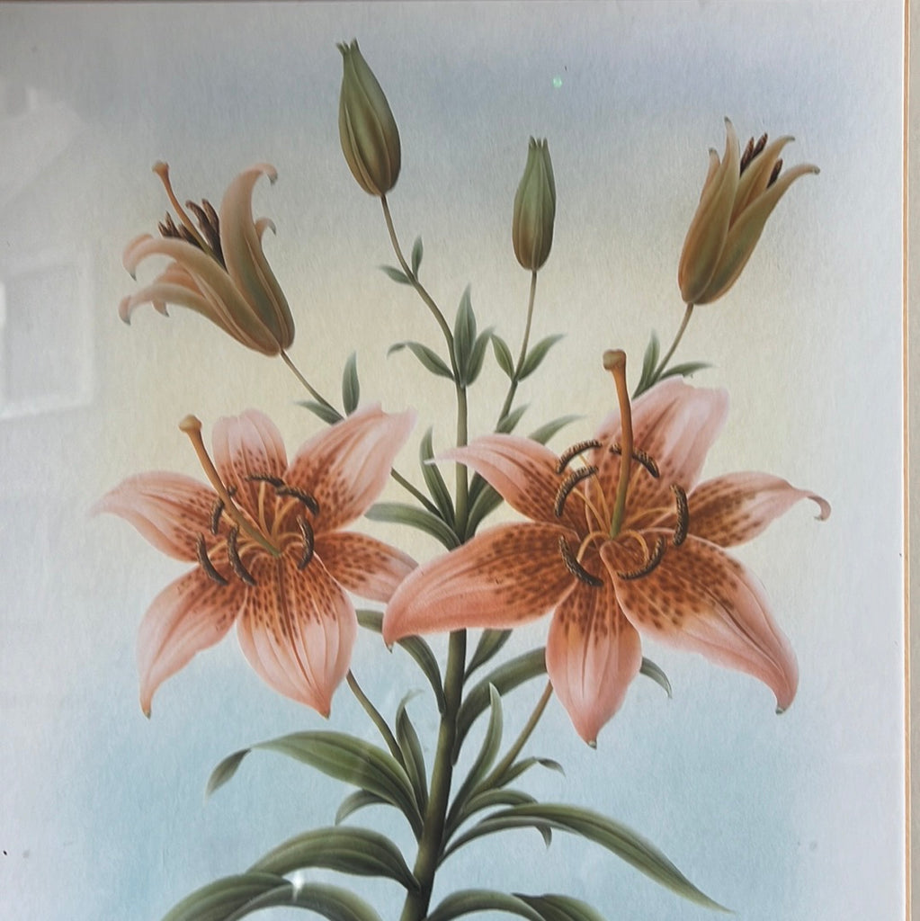 Featuring blooming pink and orange lilies, this piece adds a touch of natural beauty to any room. The perfect addition for any art lover or nature enthusiasts home.