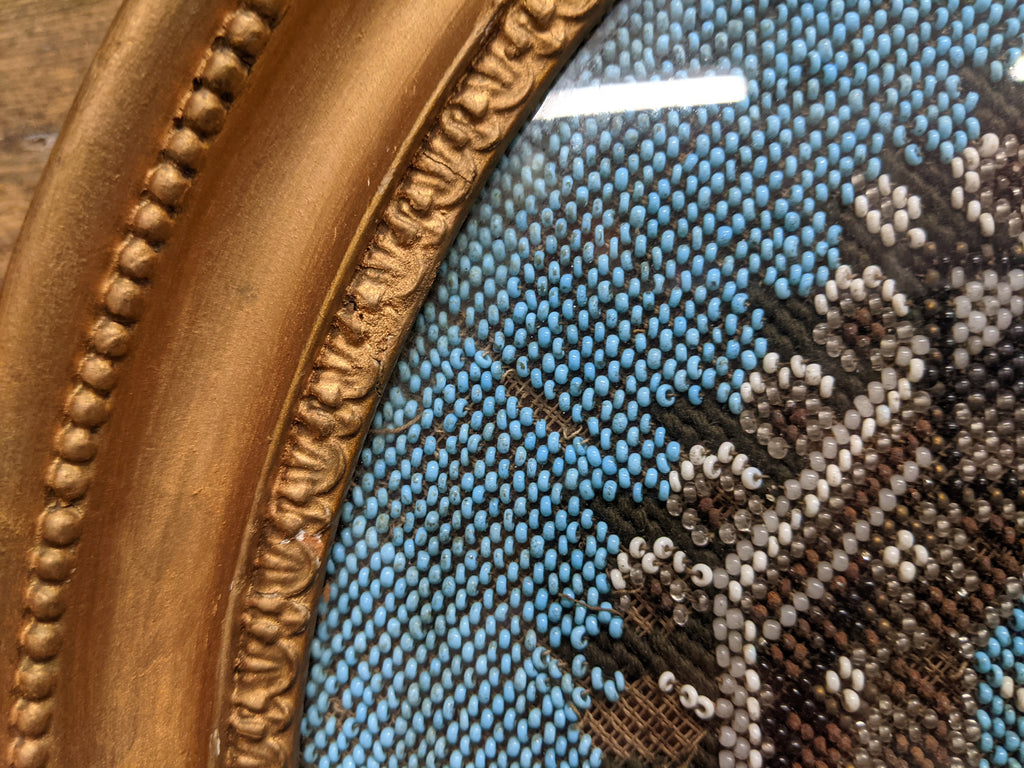 Handmade Victorian Venetian Glass Bead Framed Tapestry