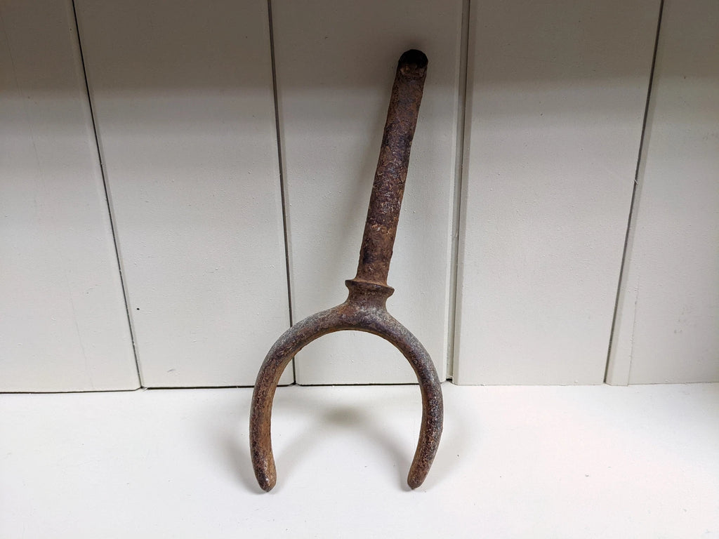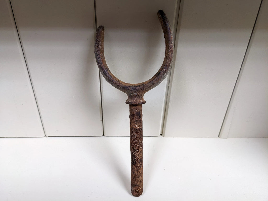 Made from heavy steel and displaying a lovely aged patina, this vintage rowlock measures 20.5cm in length and 8.2cm at its widest point.