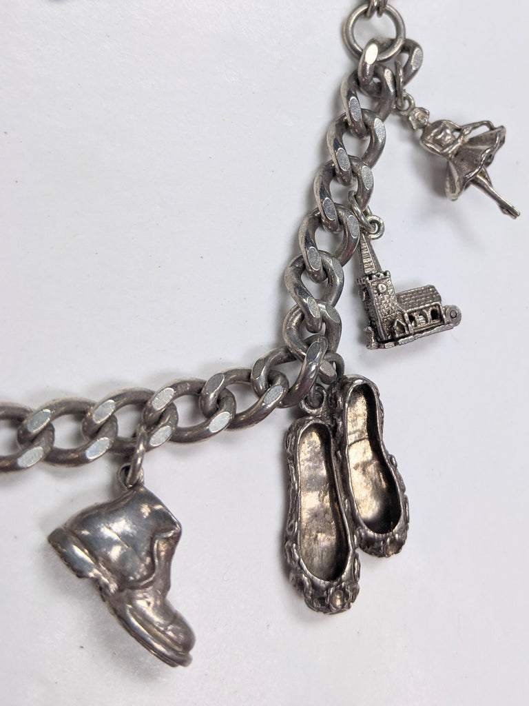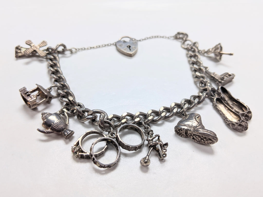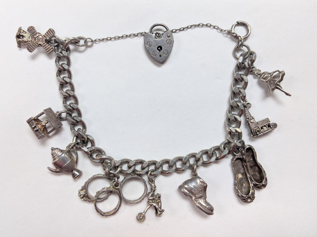 Crafted from solid silver, gift this chunky unique bracelet with nine charms to someone special today!