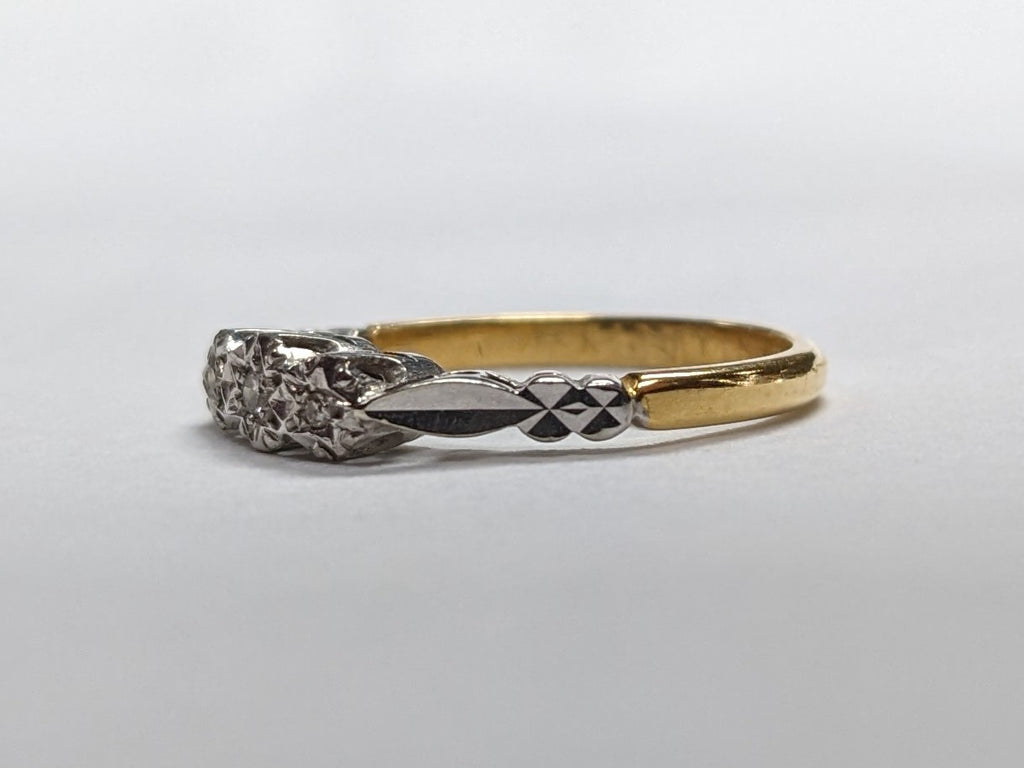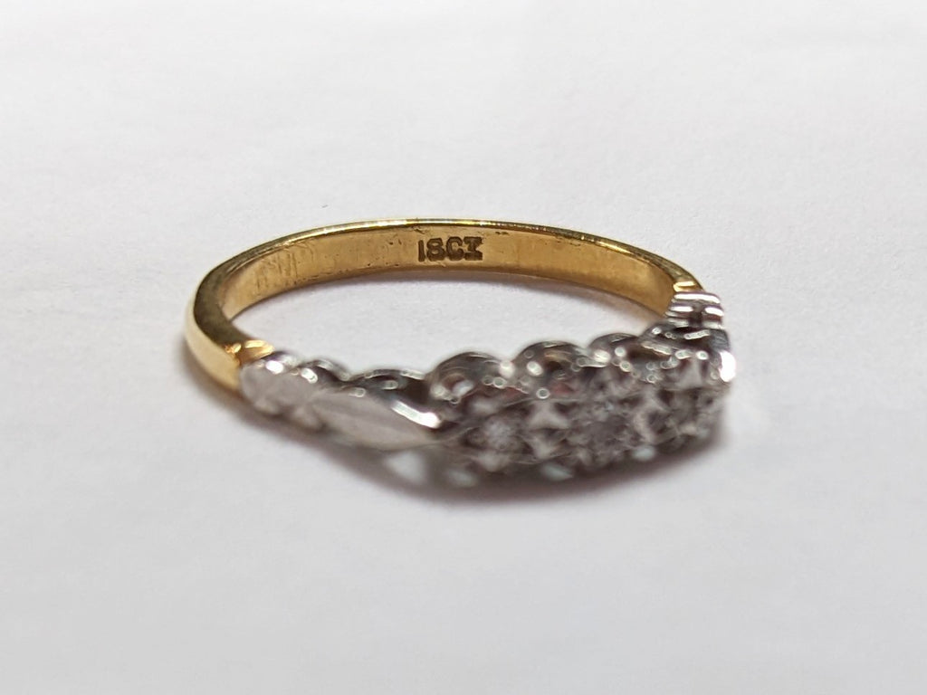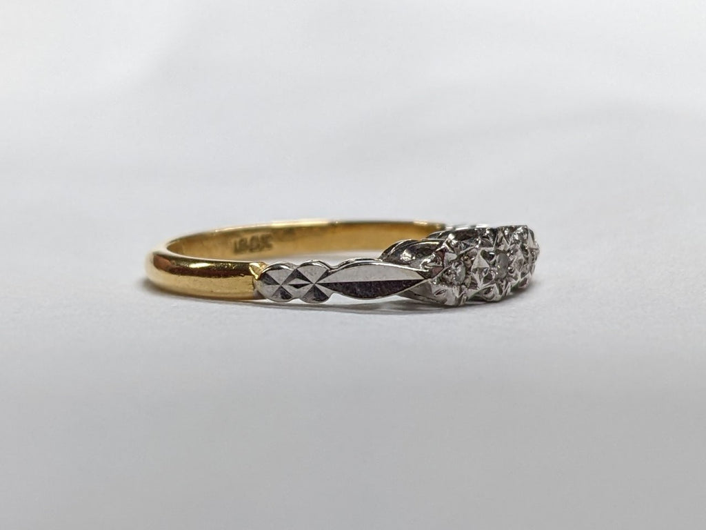 A simply stunning piece, this 18ct gold ring is inlaid with three diamonds and bears the 18ct hallmark. The most dazzling accessory to make your hand truly sparkle!