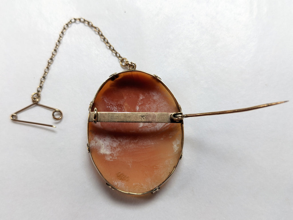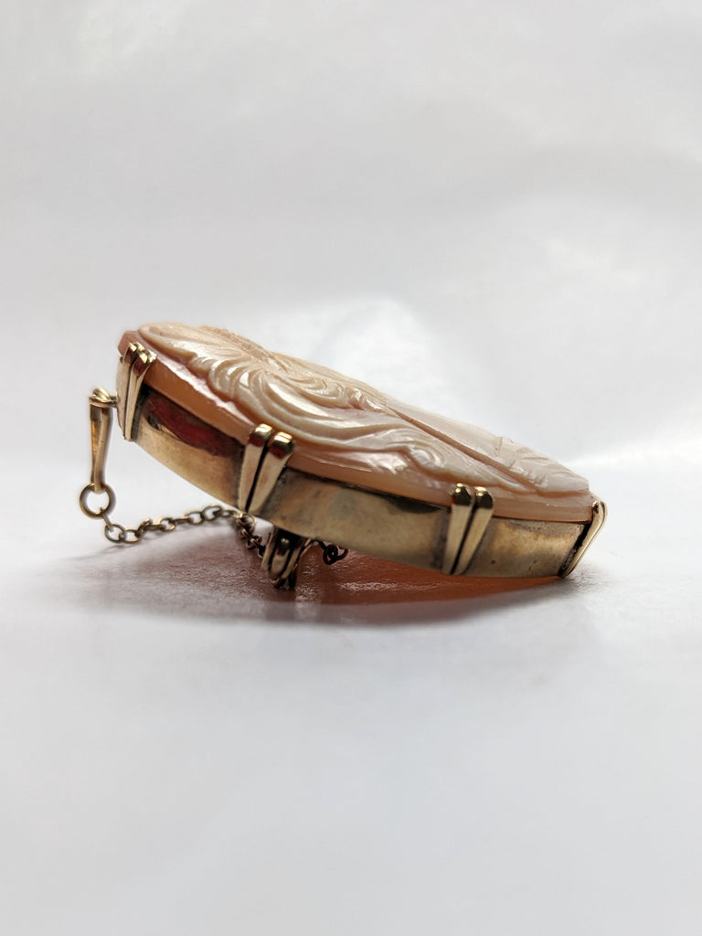 Hand carved from shell and inlaid in a pure 9 carat gold fitting, this gorgeous cameo is the perfect gift or addition to a collection!