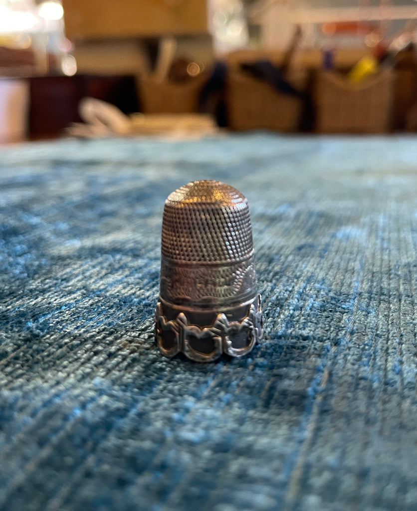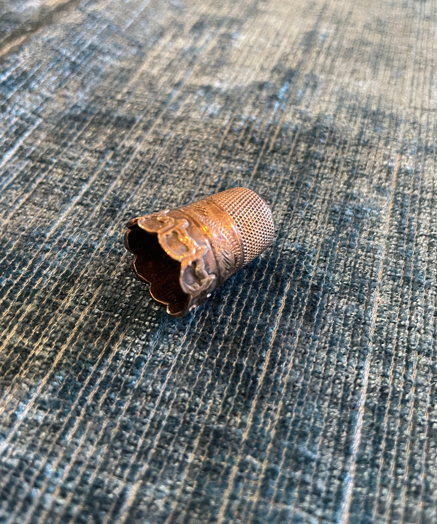 A charming antique metal thimble, beautifully decorated and presented in its original fitted case. The thimble itself is in good condition, making it both a practical sewing tool and a delightful collector’s piece.