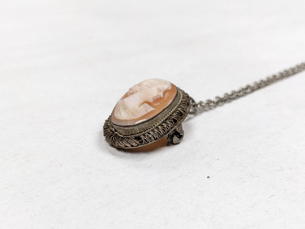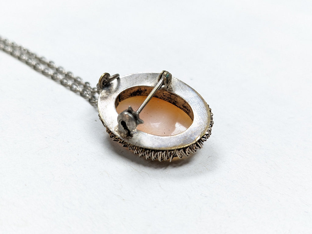 Hand Carved Cameo Brooch Necklace