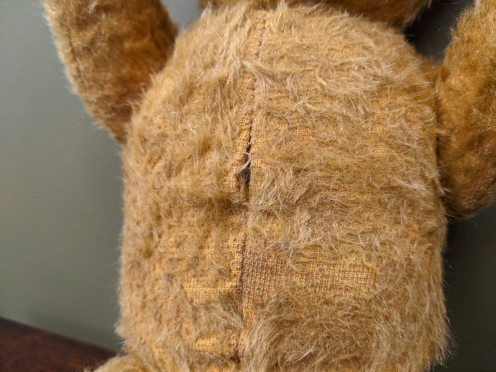 Considering its age, the bear is in extremely good condition with only one noticeable gap in the stitching on his belly and to the top of his right ear which we’ve tried our best to picture.
